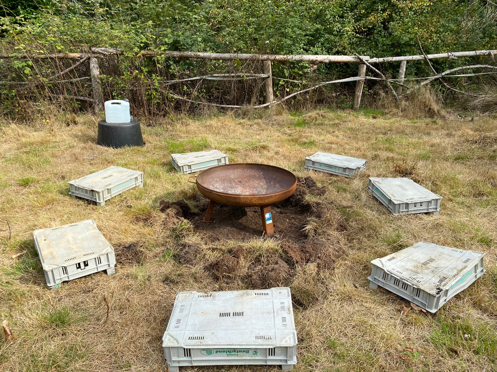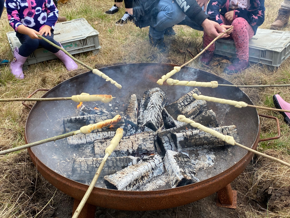Am Samstag, 24.09.2022, trafen sich mehrere Familien in der Nähe der Hardter Jugendherberge, um einen Tag im Wald zu verbringen. Doch wo musste man hin? Dank einiger toller Spürnasen fanden die Kinder schnell die Hinweise am Weg und konnten den Ort des Geschehens entdecken. Dort war schon alles vorbereitet. Ein Ofen qualmte vor sich hin, so dass Teewasser warm werden konnte und mit den Kindern wurde schnell erarbeitet, was man benötigt, um ein Feuer zu entzünden. Als die Flammen dann zur Glut wurden, konnte das Stockbrot in die Hitze gehalten werden und als Nachtisch gab es Marshmallows- hmmmm, lecker.