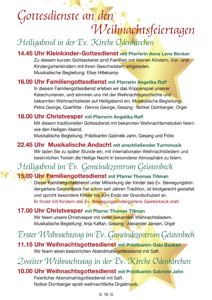 Unsere Gottesdienste an den Weihnachtsfeiertagen
