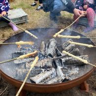 Am Samstag, 24.09.2022, trafen sich mehrere Familien in der Nähe der Hardter Jugendherberge, um einen Tag im Wald zu verbringen. Doch wo musste man hin? Dank einiger toller Spürnasen fanden die Kinder schnell die Hinweise am Weg und konnten den Ort des Geschehens entdecken. Dort war schon alles vorbereitet. Ein Ofen qualmte vor sich hin, so dass Teewasser warm werden konnte und mit den Kindern wurde schnell erarbeitet, was man benötigt, um ein Feuer zu entzünden. Als die Flammen dann zur Glut wurden, konnte das Stockbrot in die Hitze gehalten werden und als Nachtisch gab es Marshmallows- hmmmm, lecker.